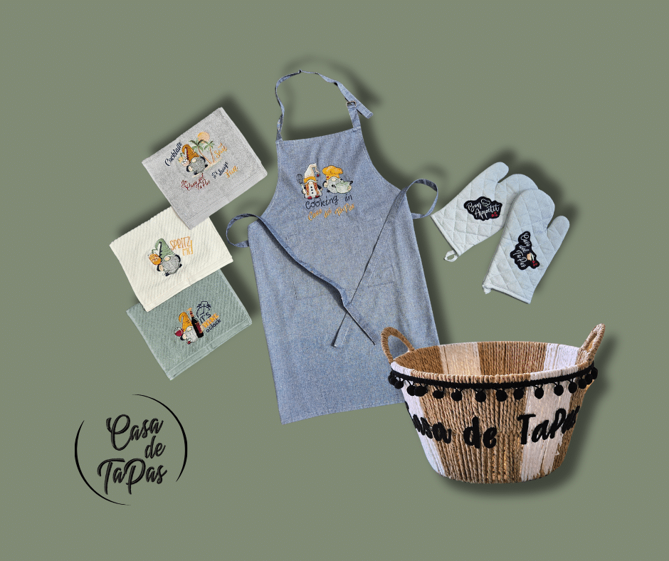 Deze prachtige set bestaat uit een stijlvol keukenschort, stevige pannenlappen of ovenwanten en zachte keukenhanddoekjes – allemaal gepersonaliseerd geborduurd voor een unieke en warme uitstraling. Perfect voor in je eigen keuken of als een bijzonder cadeau voor een kookliefhebber.
