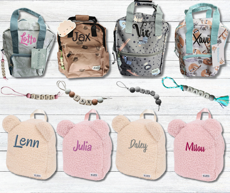 Kinderen stelen helemaal de show met deze trendy rugzakken geborduurd met zijn of haar naam. Er zijn verschillende modellen beschikbaar.